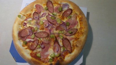 Pizza grill, nasza majowa "pizza miesiąca", to kompozycja plastrów soczystej kiełbasy, przeplatanych kruchym bekonem. Słodko-kwaśnego posmaku dodają plastry konserwowanego ogórka i kawałeczki czerwonej cebuli. Pizzę grill podajemy z sosem chrzanowym na bazie najlepszego, wszystkim znanego chrzanu, chrzanu Wiesława Dymeckiego.