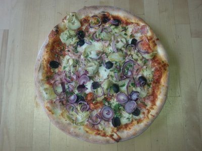 Karczoch to jedno z najpiękniejszych warzyw na świecie. Kto by pomyślał, że w tych fantastycznie wyglądających jadalnych kwiatostanach z twardymi, mięsistymi liśćmi, chroniącymi delikatne serce karczocha, drzemią niespożytkowane supermoce. Karczochy to prawdziwa bomba witaminowa o odchudzających właściwościach. Karczochy podaje się skropione oliwą z oliwek, z dipami, a my na Pizzy Miesiąca razem z wędzonym boczkiem, mozzarallą, czerwoną cebulą, oliwkami i pietruszką.